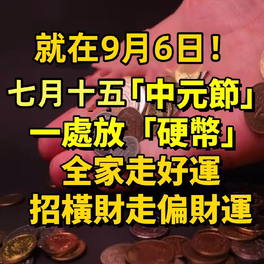 就在9月6日! 七月十五「中元節」一處放「硬幣」全家走好運,招橫財走偏財運!