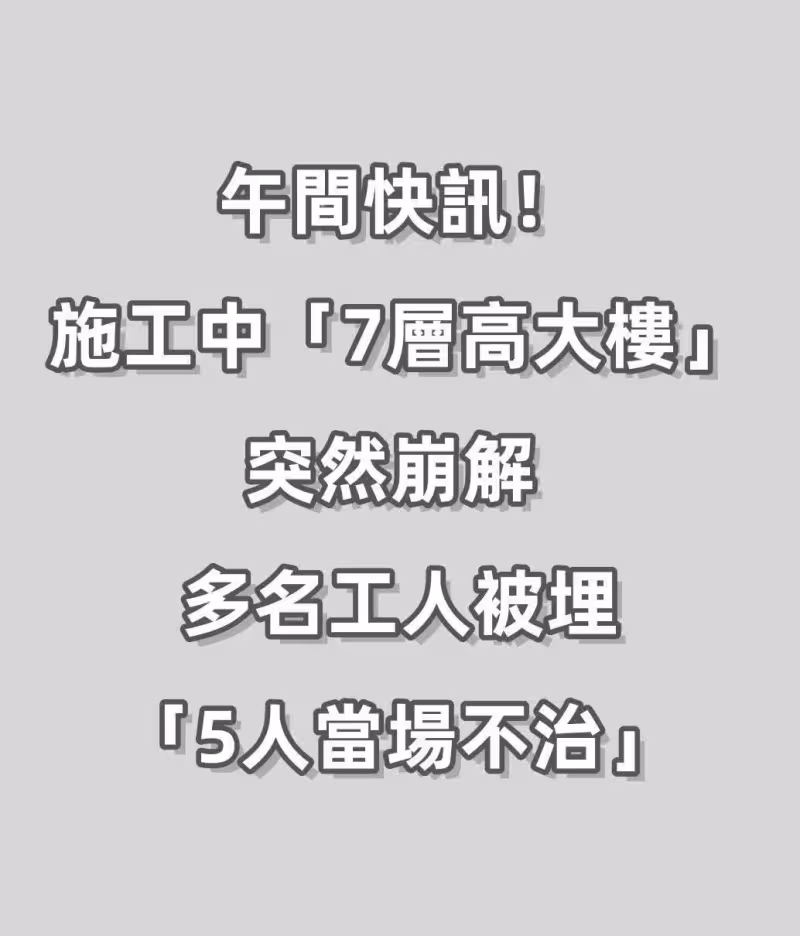 午間快訊!施工中「7層高大樓」突然崩解 多名工人被埋「5人當場不治!」