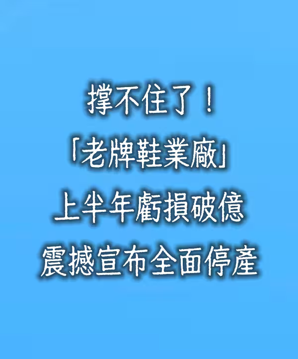 撐不住了!「老牌鞋業廠」上半年虧損破億 震撼宣布全面停產