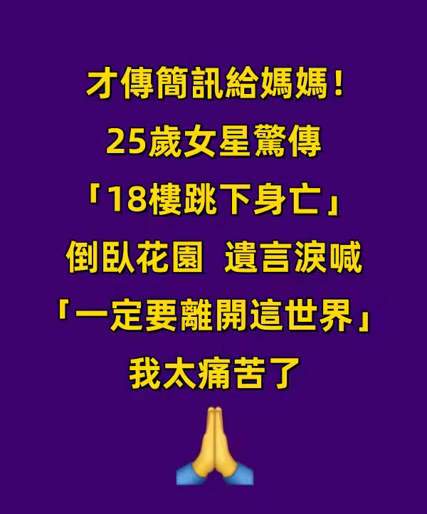 才傳簡訊給媽媽!25歲女星驚傳「18樓跳下身亡」倒臥花園 遺言淚喊「一定要離開這世界」我太痛苦了...