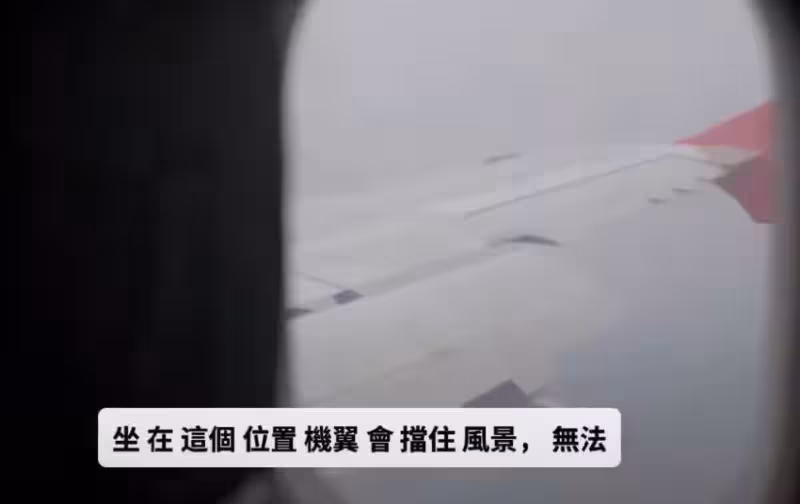 坐在這個位置機翼會擋住風景,無法看到飛機外的風景。