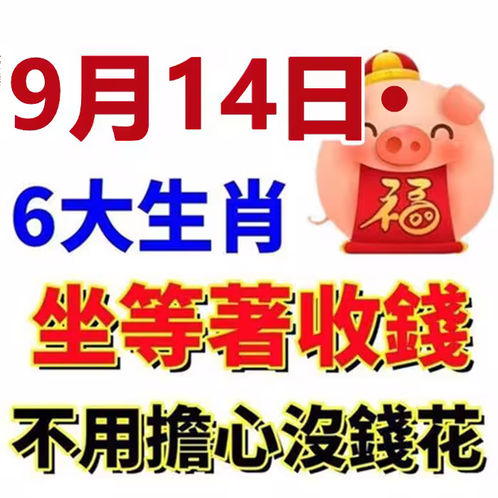 9月14日 到9月底財運爆棚,橫財不斷,必日進斗金,大富特富,富得流油,家庭喜事接二連三,有機會添丁添福,日子過紅紅火火,錢財大旺。