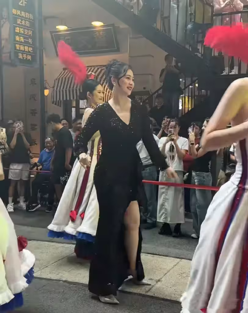 57歲翁虹景區跳舞「謀生」,穿緊身裙暴露真實身材,看著有150斤!