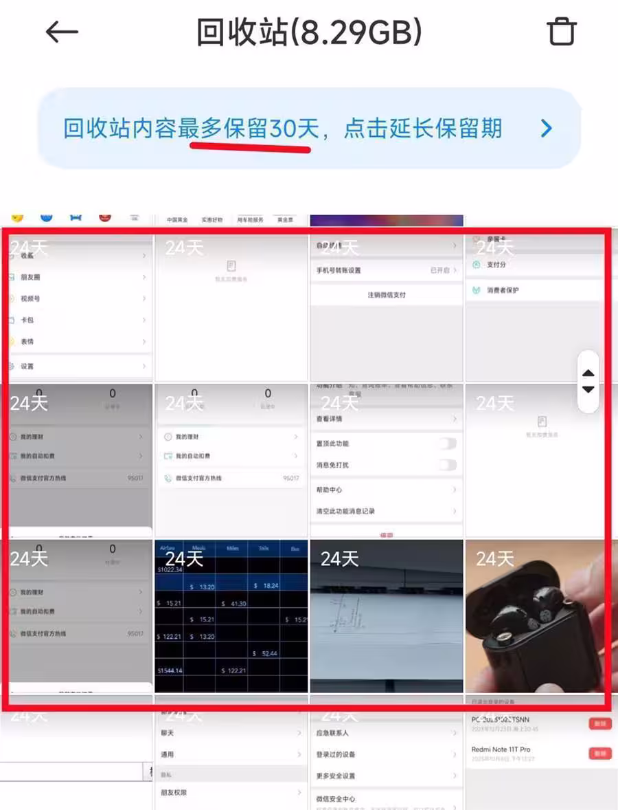但是在回收站裡面,默認是保存30天的期限,因此大家要在這個時間呢,儘快把刪除的照片找回來,不然等時間過了就會被徹底刪除,刪除之後就無法找回來了!