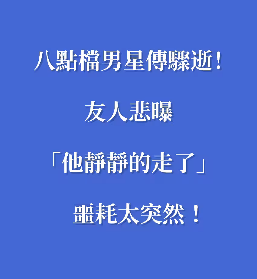 八點檔男星傳驟逝!友人悲曝「他靜靜的走了」 噩耗太突然