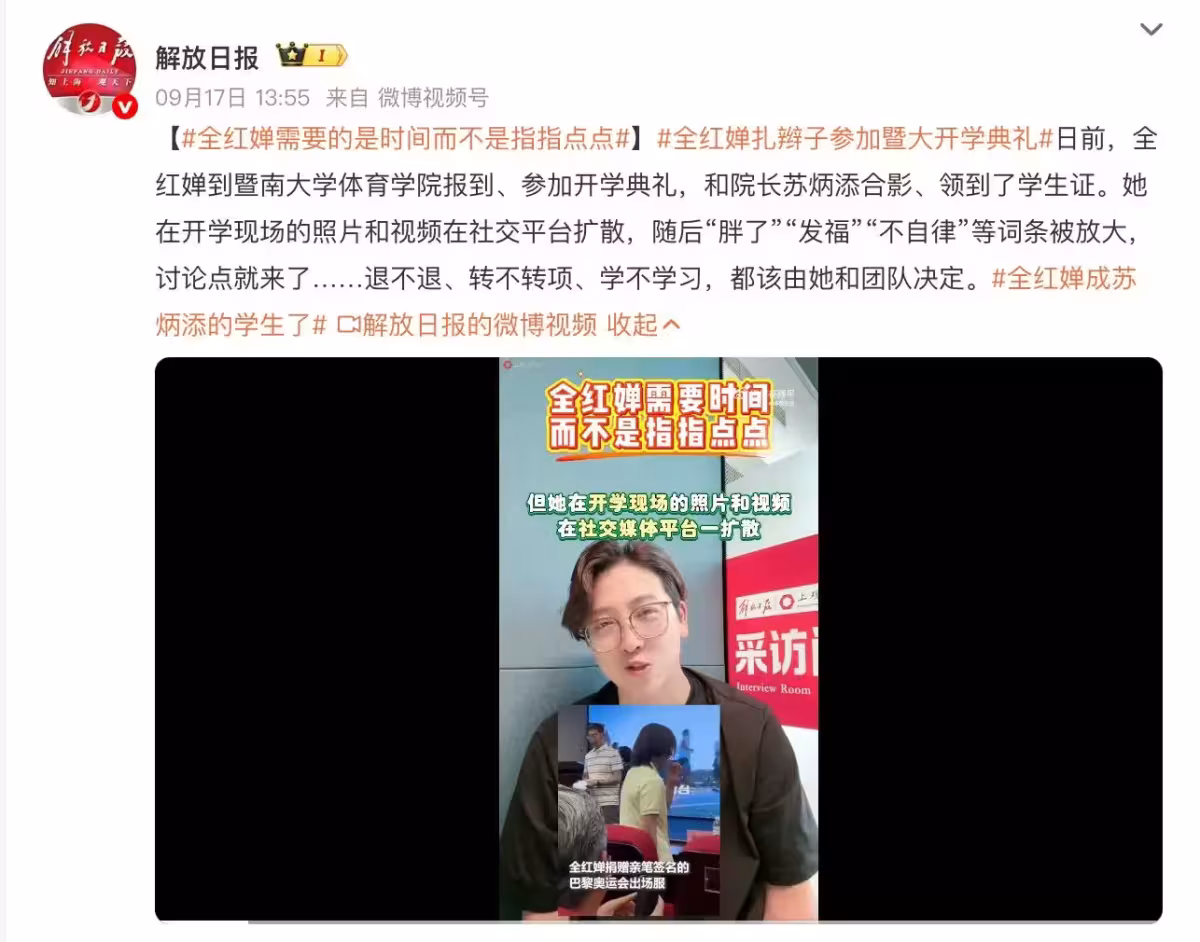 全紅嬋被批發福+不自律!官媒發聲:她需要的是時間而非指指點點