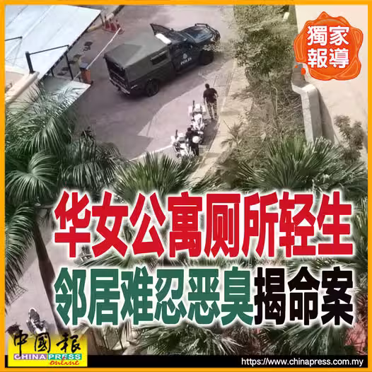(吉隆坡19日訊/獨家報導)華裔女子在公寓廁所內上吊,身亡多日後,直至今早發臭難忍,鄰居始揭發命案!