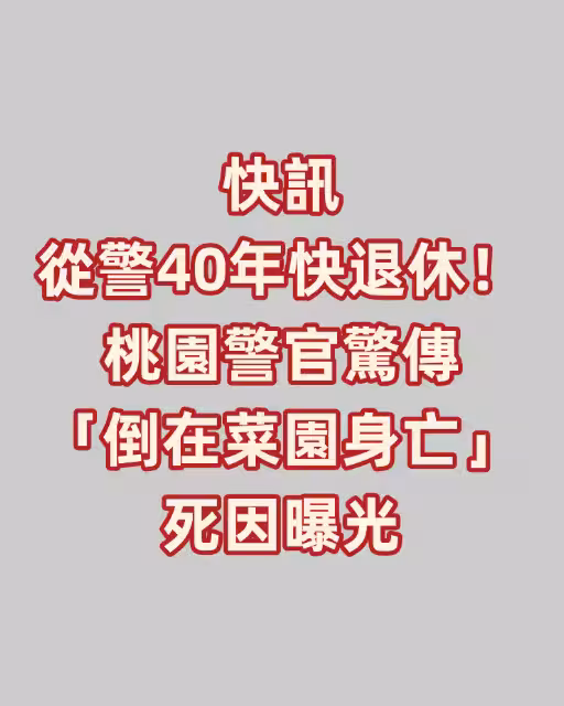快訊/從警40年快退休!桃園警官驚傳「倒在菜園身亡」死因曝光