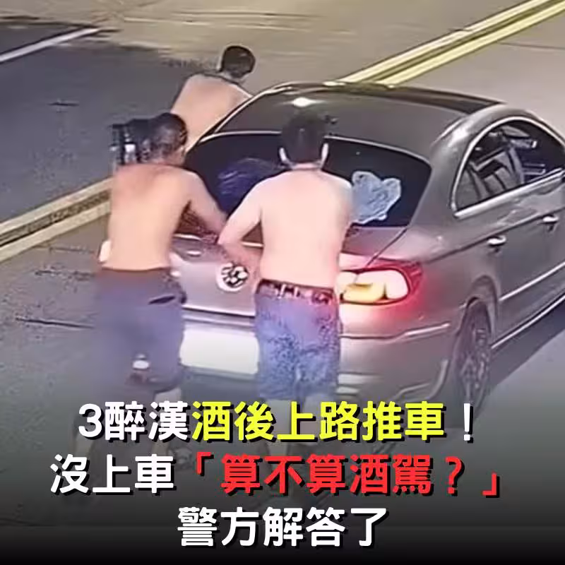 三個醉漢「喝酒後上路推車」!沒上車「算不算酒駕」警方解答了