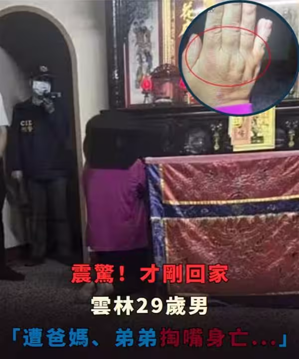 震驚!才剛回家,雲林29歲男「遭爸媽、弟弟掏嘴身.亡」