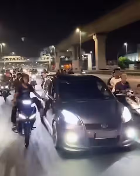 早前網絡瘋傳一則視頻,逾20名摩哆騎士如同「摩哆大軍」,聲勢浩大的圍堵一輛第二國產邁薇轎車,期間轎車右側後視鏡疑似被踢壞,其中一名騎士企圖暴力開車門,還不時踢踹轎車、甚至多次用手做勢向轎車司機揮拳。