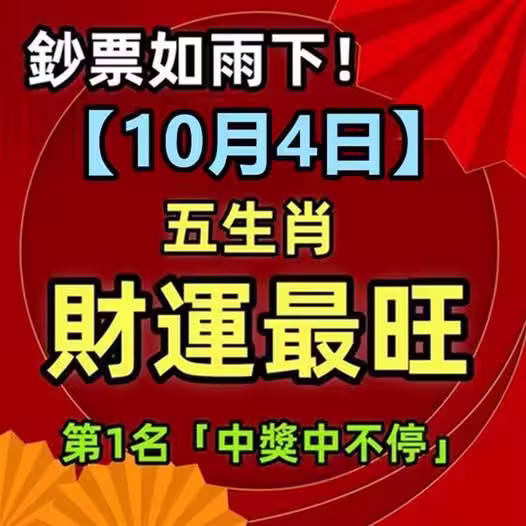 鈔票如雨下!【10月4日】五生肖財運最旺,第1名「 中獎中不停 」!
