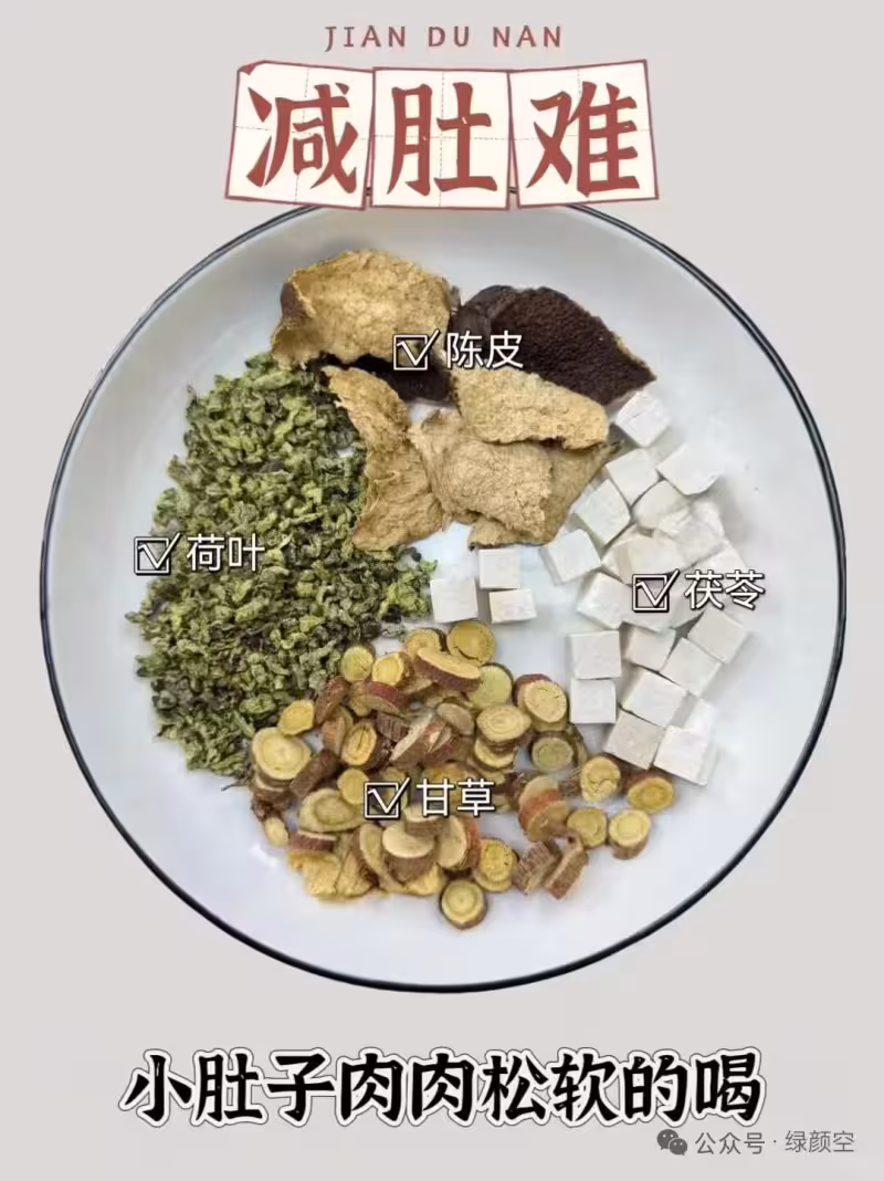 荷葉消脂,茯苓去濕,陳皮理氣,甘草調和味道,堅持喝一段時間,你會發現小肚腩的肉肉變得緊實了,穿衣服都好看多了!