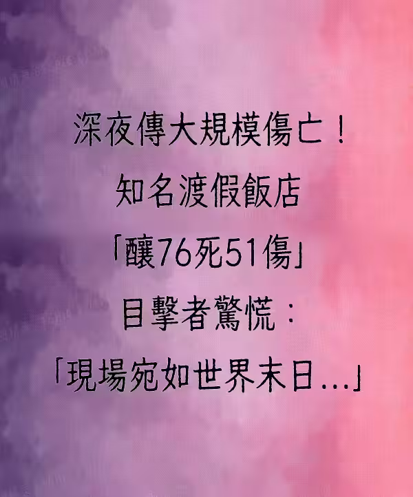 深夜傳大規模傷亡!知名渡假飯店「釀76死51傷」 目擊者驚慌:「現場宛如世界末日」