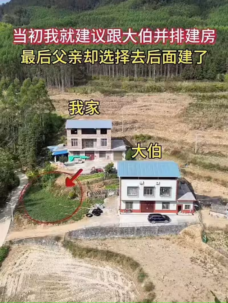 我曾建議我家與大伯家並排建房,這樣靠近路邊,出入會更方便。