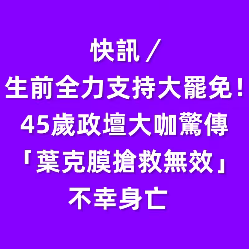 快訊/生前全力支持大罷免!45歲政壇大咖驚傳「葉克膜搶救無效」不幸身亡