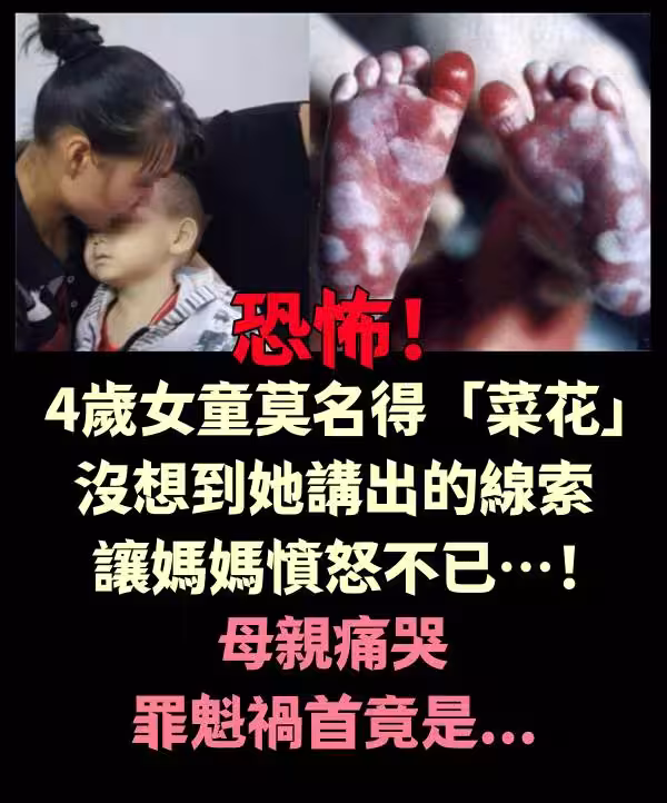 恐怖!4歲女童莫名得「菜花」,沒想到她講出的線索讓媽媽憤怒不已!母親痛哭,罪魁禍首竟是……