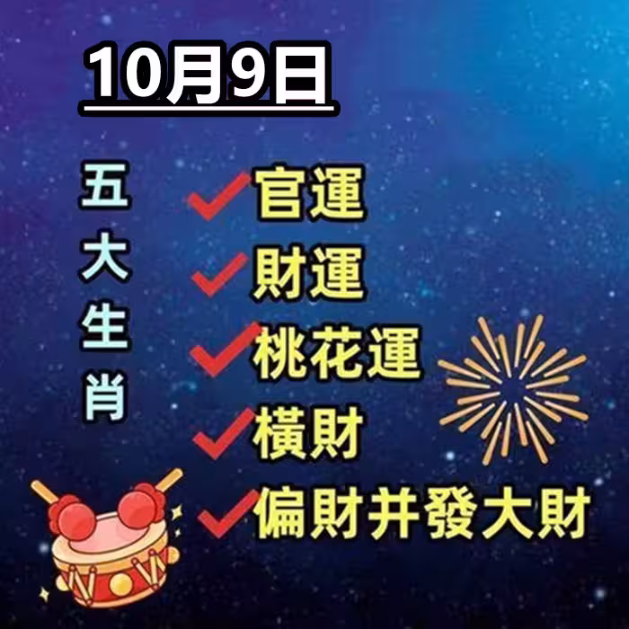 10月9日:官運 財運 桃花運 橫財 偏財並發大財的五大生肖
