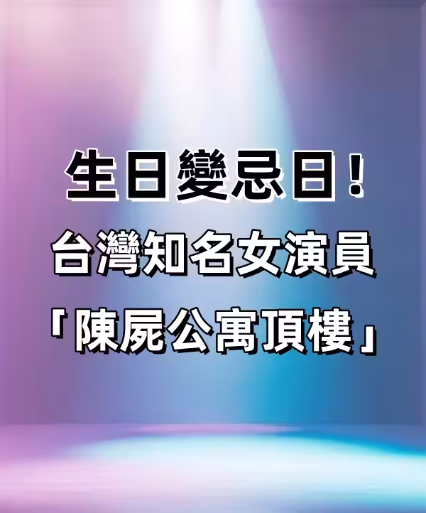 生日變忌日!台灣知名女演員「陳屍公寓頂樓」