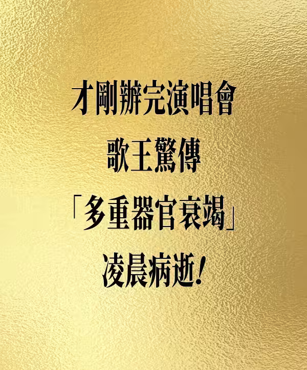 才剛辦完演唱會 歌王驚傳,「多重器官衰竭」凌晨病逝