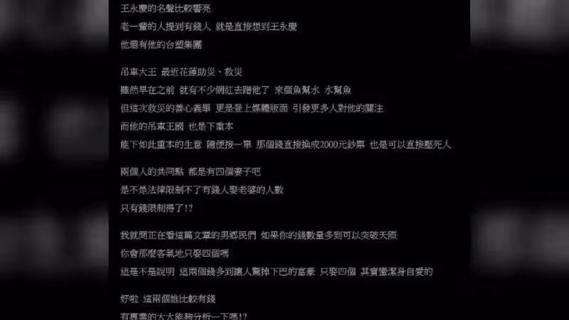 「吊車大王、王永慶」誰最有錢?網揭2人財力「驚人差距」:他富可敵國