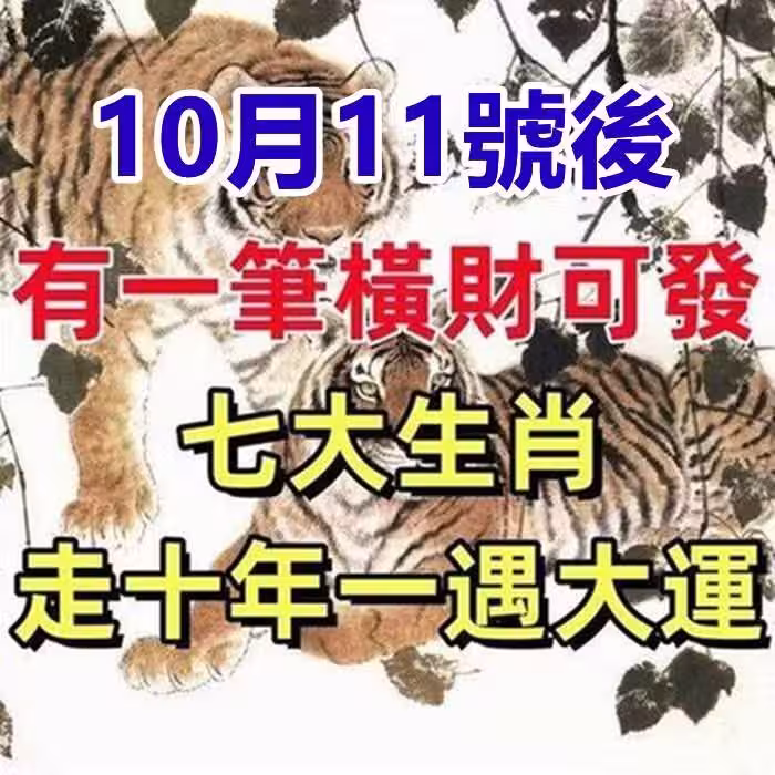 10月11號後有一筆橫財可發,七大生肖走十年一遇大運。
