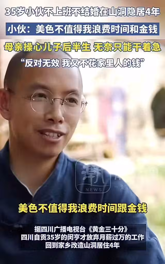 近日,一名35歲男子不上班、也不結婚,隱居在山洞4年了,這可讓他的母親擔心死了,畢竟35歲老大不小,再不結婚就老了。