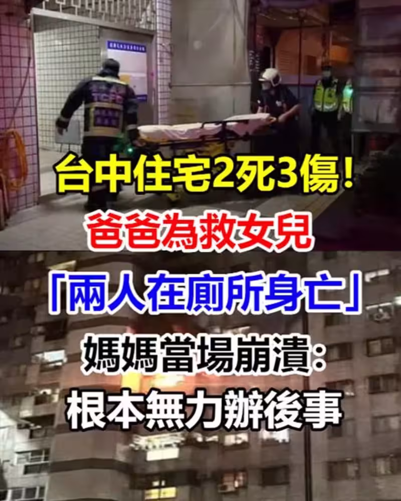 台中住宅2死3傷!爸爸為救女兒「兩人在廁所身亡」媽媽當場崩潰:「根本無力辦後事」
