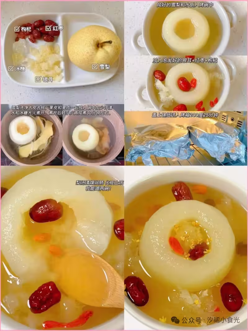食材:雪梨、冰糖、銀耳、紅棗,枸杞