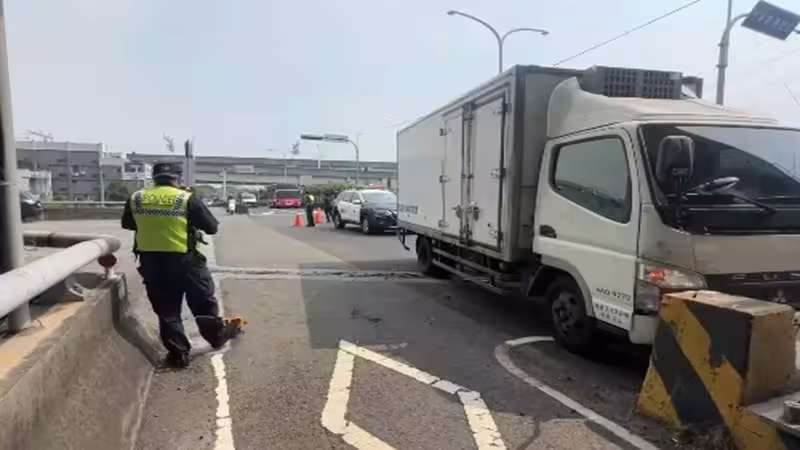 台中市烏日區今(16)日上午11時許驚傳一起自撞事故,一輛茶葉行貨車行經環河路三段與台74線匝道口大橋時,不明原因自撞分隔島,車輛卡在橋中央,路過民眾發現男駕駛已無呼吸心跳,立即將人從車內救出並進行CPR,救護人員到場後緊急送醫搶救。