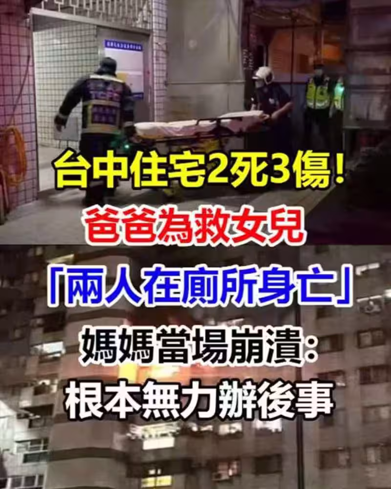 台中住宅2死3傷!爸爸為救女兒「兩人在廁所身亡」媽媽當場崩潰:「根本無力辦後事」