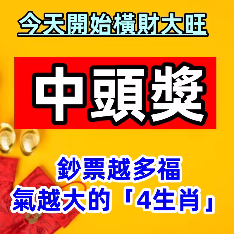 今天開始橫財大旺,有望中頭獎賺大錢,4生肖的財運特別旺盛