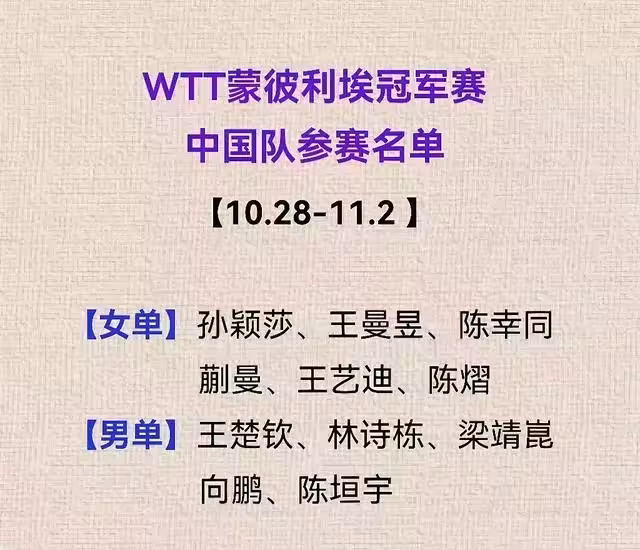 但是截止目前,種種跡象已經表明,國乒不會在蒙彼利埃站退賽任何一人,雙世一不但將鐵定領銜出戰,而且國乒對本站的兩個冠軍志在必得!