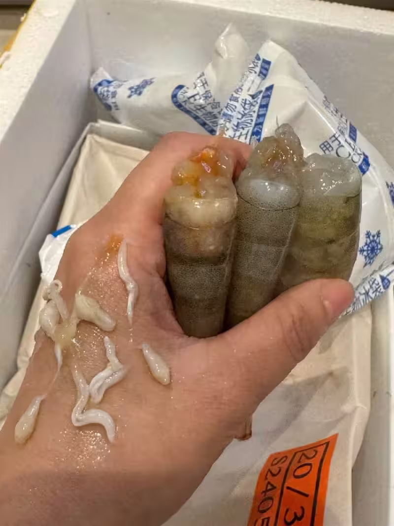 新買的蝦發現有「白蛆」,被嚇的不敢吃,她怒找店家理論卻被嘲:第一次吃海鮮嗎~