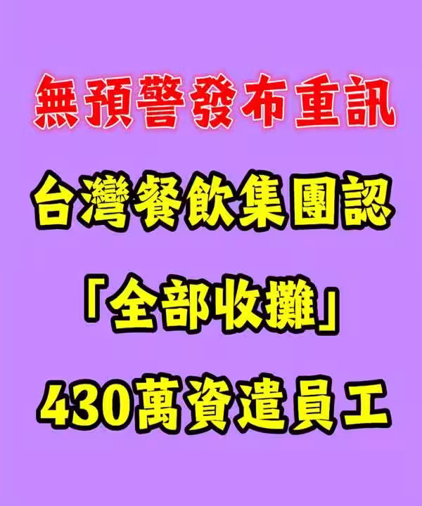 無預警發布重訊!台灣餐飲集團認「全部收攤」430萬資遣員工.