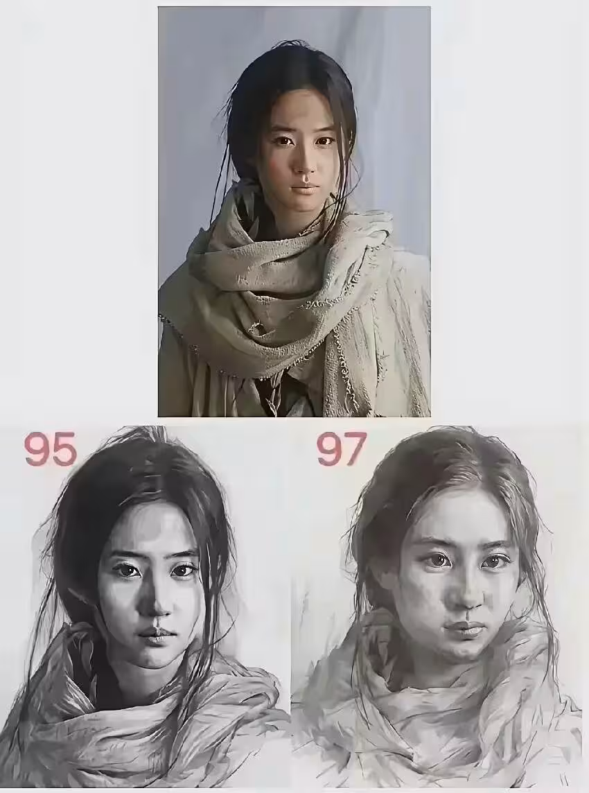 小侄女學習了三年的素描,她告訴我她的畫作只得了95分,而她的一位同學卻得了97分。