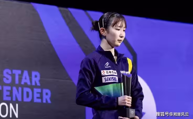 獲得女單亞軍的早田希娜首先登台領獎。早田希娜已經25歲,比張本美和大了8歲。張本美和屬於小半輩的球員了。早田希娜輸給張本美和,多少有點沒面子。尤其在決賽中,早田希娜贏了前兩局,第七局也占據了優勢,竟然還輸了,心理自然很不爽,甚至覺得憋屈。早田希娜面無表情地登上領獎台,黑著臉,顯得很失落。她腦袋低垂,陷入沉思,估計還在想決賽失利的原因。