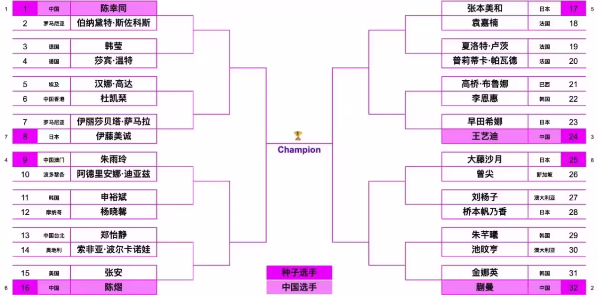 國乒4名女單分落4個1/4區,算是好的簽表,不會前提相遇,是有機會能夠實現包攬四強,就看能否守住自己的1/4區。