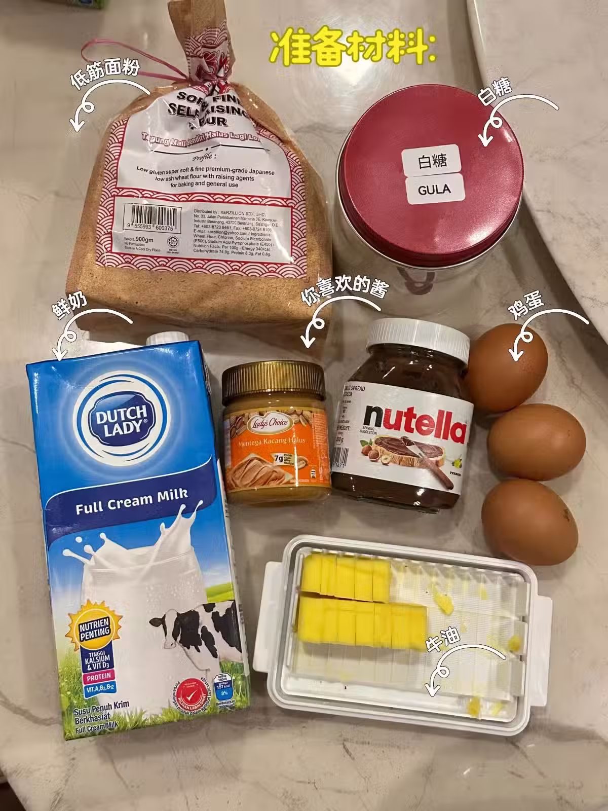 🥚雞蛋x1 🥛大概4口,🧈牛油小小塊,白糖2湯匙,麵粉分兩次倒,確保比較濃稠就🆗了,倒下去不能太稀 不然很難成型,一定要改完,然後機器開最熱15分鐘 兩面都金黃色就可以出鍋了