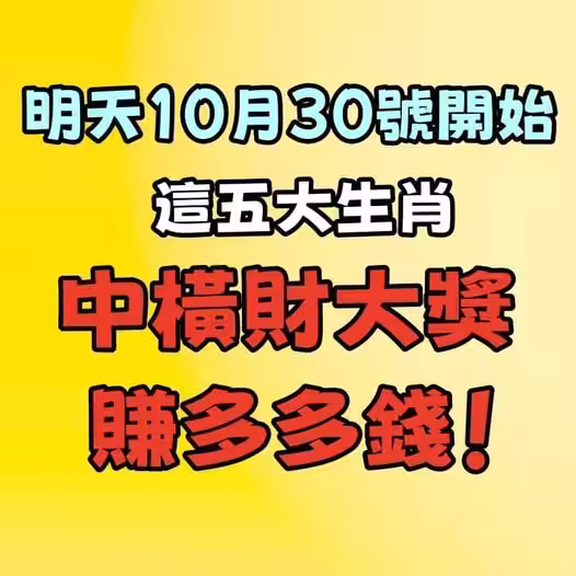 明天10月30號開始,這五大生肖中橫財大獎,賺多多錢