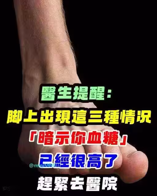 因此,日常生活中就一定要注意了,尤其是本身就有糖尿病的人群更要注意,糖尿病足也是不容小覷,嚴重的還有截肢的危險,看看你的腳有沒有出現以下3種症狀,如果有說明你的血糖已經很高了,趕緊去醫院治療!