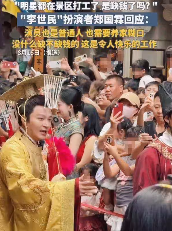 就連63歲的馬景濤在中暑後也堅持演出,其中鄭國霖更是近期最活躍的景區藝人,以帝王扮相頻繁出現在各大景點。