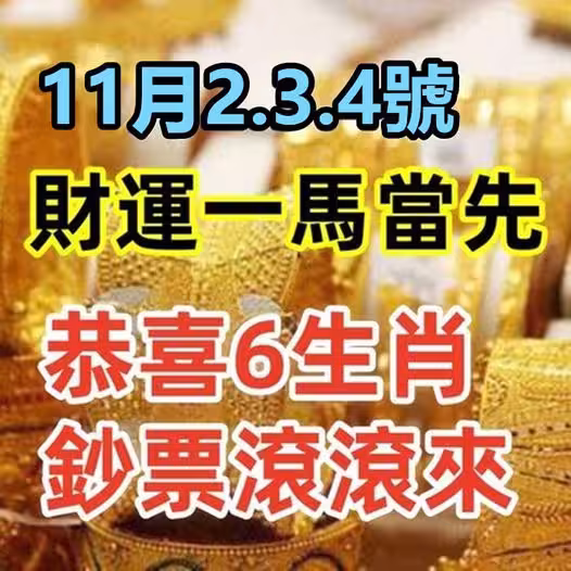 11月2.3.4號財運一馬當先,恭喜6生肖鈔票滾滾來~