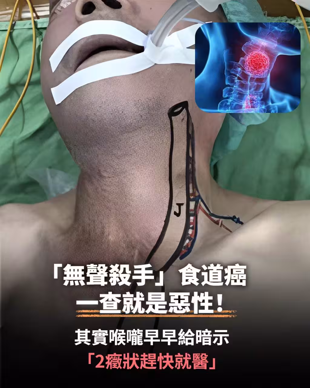 「無聲殺手」食道癌一查就是惡性!其實喉嚨早早給暗示「2症狀趕快就醫…」