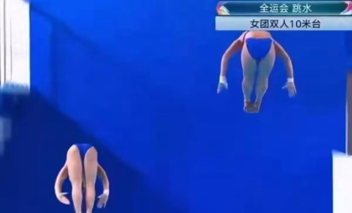 但網友很快發現了問題。 有人曬出兩位選手起跳後在空中的慢鏡頭定格截圖,圖片清晰顯示,全紅嬋與王偉瑩從起跳高度到空中旋轉姿態存在明顯不同步。 甚至有報道描述那張截圖顯示出「兩位選手在空中的旋轉動作,是有多麼的不同步」。