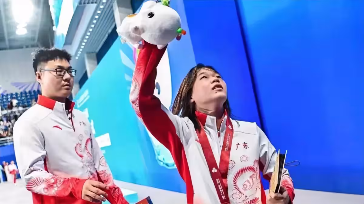 全紅嬋現場娃娃雨下的太大,何威儀教練秒變全紅嬋的娃娃搬運工:秒變小烏龜專業戶