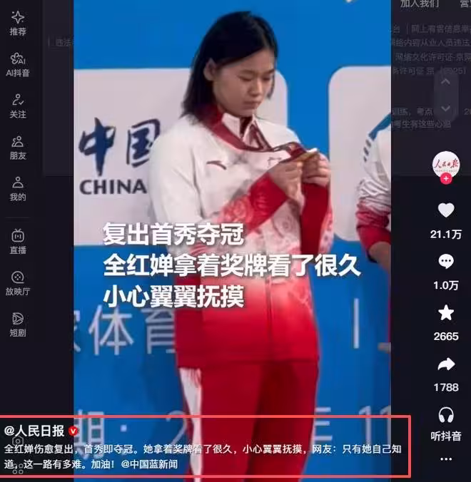 復出發胖!不到24小時,人民日報兩次為全紅嬋「撐腰」,4個字讓黑粉啞口無言