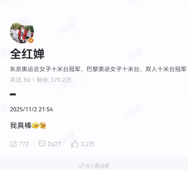 復出發胖!不到24小時,人民日報兩次為全紅嬋「撐腰」,4個字讓黑粉啞口無言
