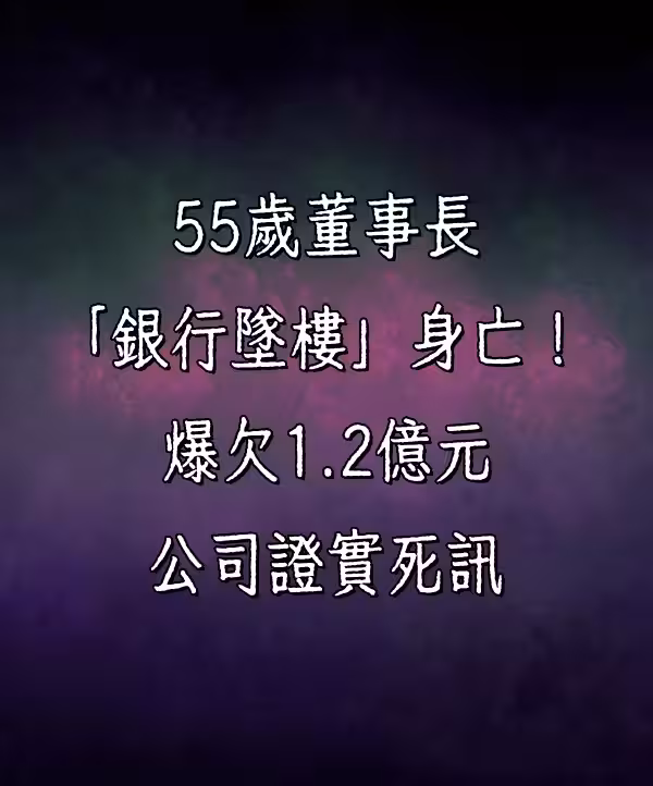 驚!55歲董事長「銀行墜樓」身亡!爆欠1.2億元 公司證實死訊