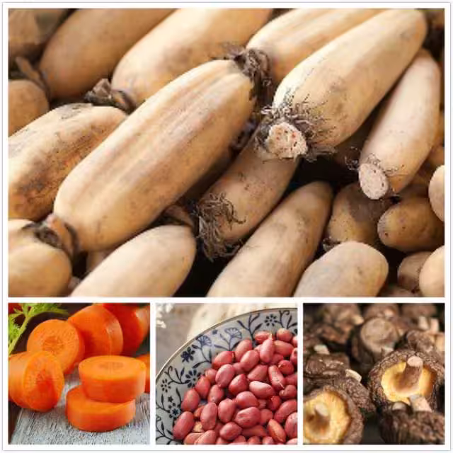 蓮藕補血強身湯 蓮藕,1斤。 紅蘿蔔,半斤。 花生,4兩。 冬菇,10個。 功效:消除疲勞、凈化血液、 補血養顏。